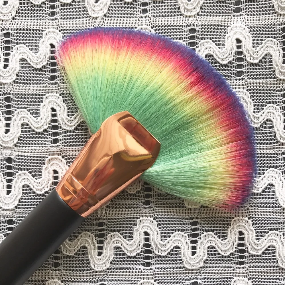 How to buy GUJHUI Soft Rainbow Hair Large Fan Shape Makeup Brush Foundation Blush Highlighter Powder Brush Sin