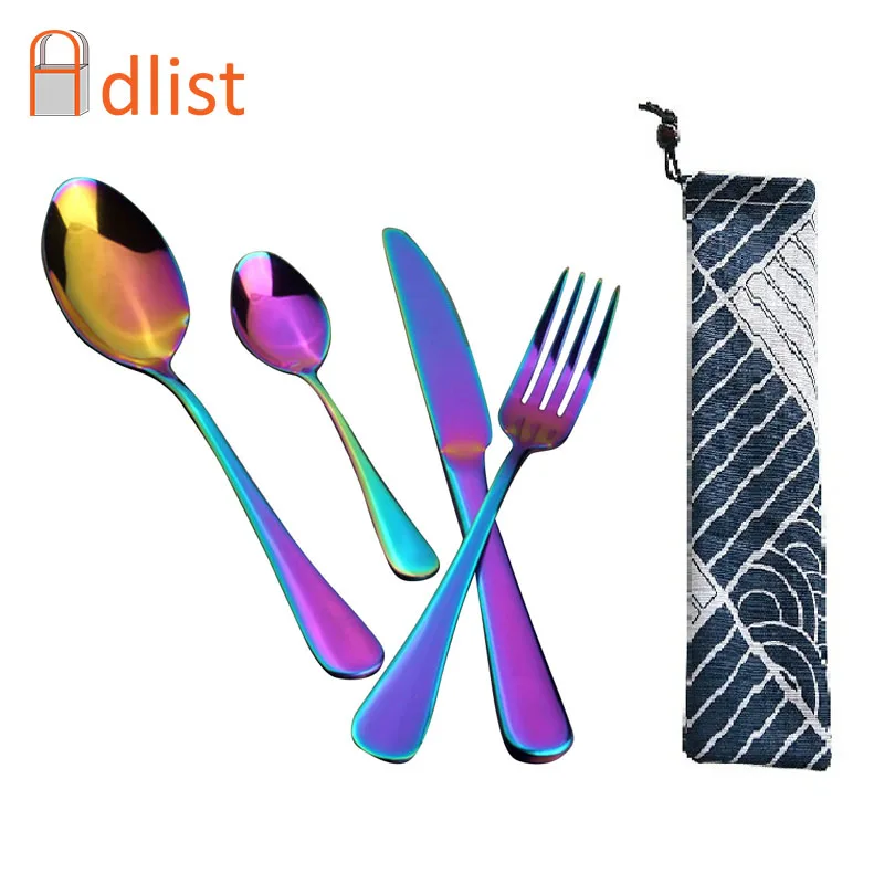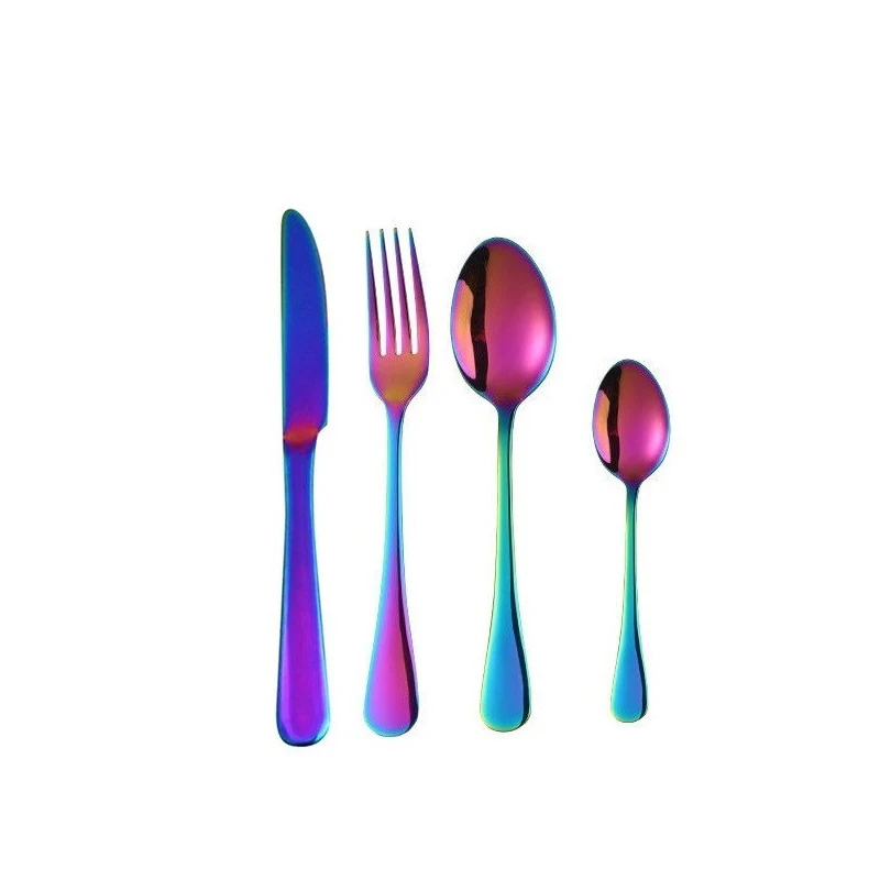 On sale 1pcs Stainless Steel Cutlery Set Rainbow Dinnerware Dinner Knives Forks Coffee Teaspoon Straw Brush