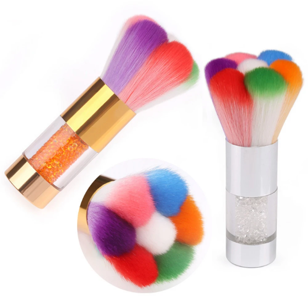 Affordable High Quality Soft Hair Nail Dust Brush Rainbow Colors Clean Manicure Tools Gold and Silver Crystal