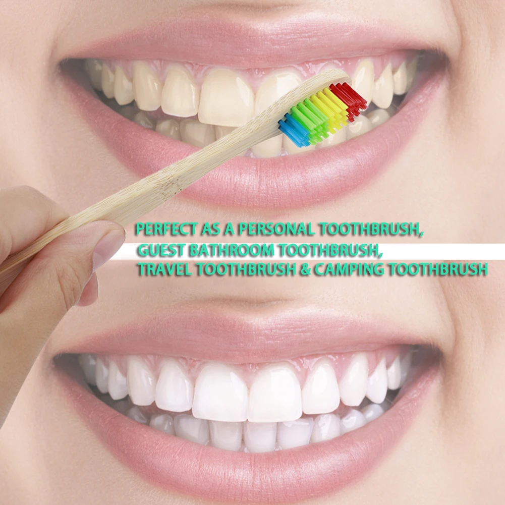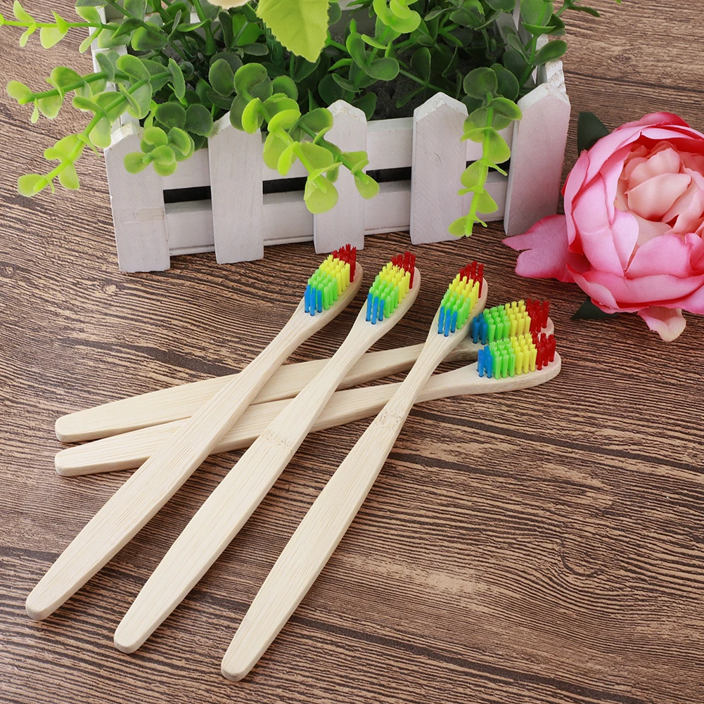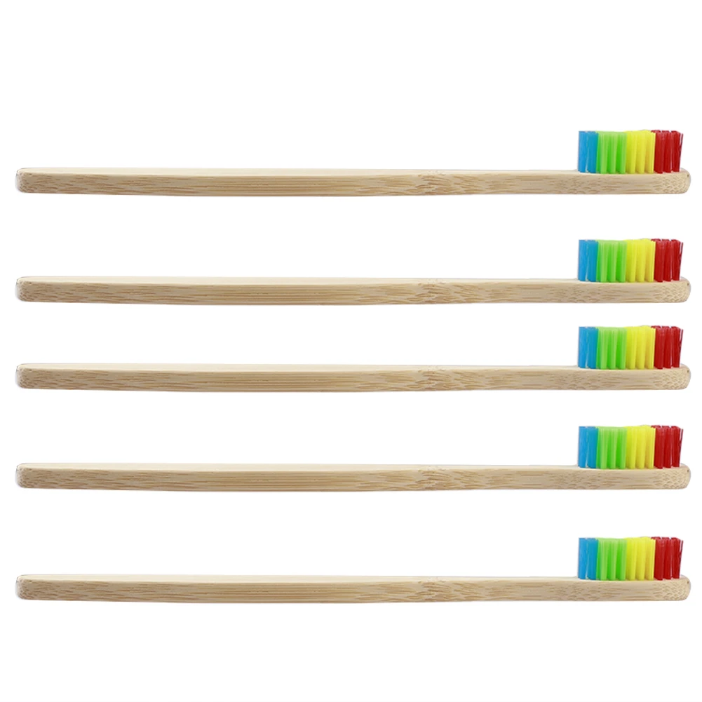 Order 5pcs Natural Bamboo Toothbrush Soft Bristle Dental Oral Care Travel Tooth Brush family use Rainbow